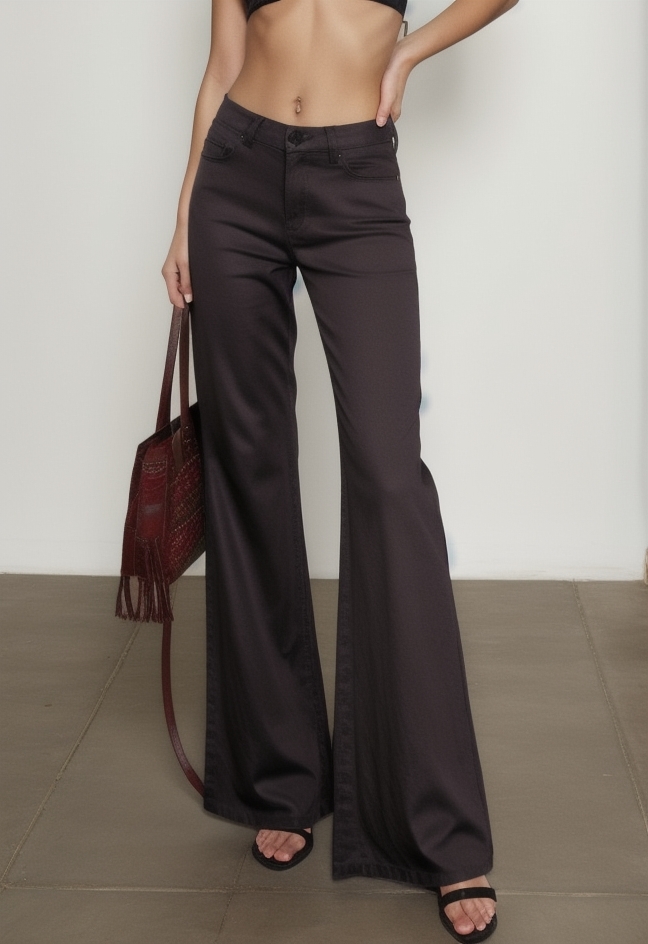 Low Waist Plain Slim-Fit Boot-Cut Pants